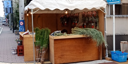 川崎大师平间寺入口(参拜道)前的稻草,松枝与竹子楼牌完成了。